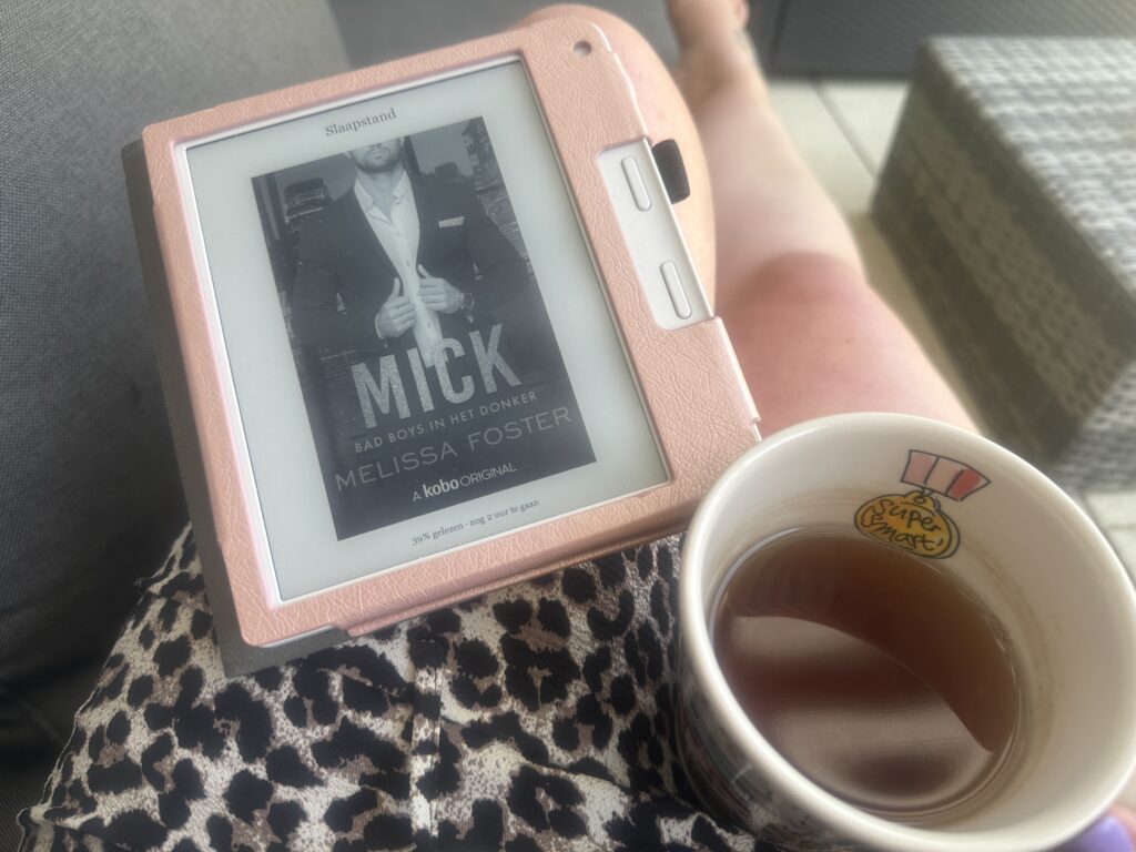 Als de kinderen al een poos op bed liggen en het eindelijk lekker is buiten, ga ik nog even met een bakkie thee en mijn ereader buiten zitten.
