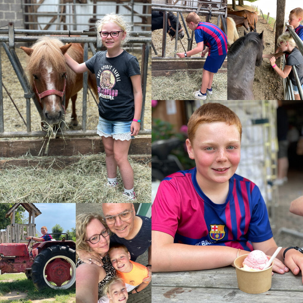 Daarna zijn we doorgereden naar De Verloren Kost waar we op de boerderijsterras genieten van een ijsje, vlaai en wat drinken. Vooral de paarden zijn hier helemaal geweldig volgens mijn tuttebel, terwijl mijn bink vooral de skelters heel erg leuk vind!