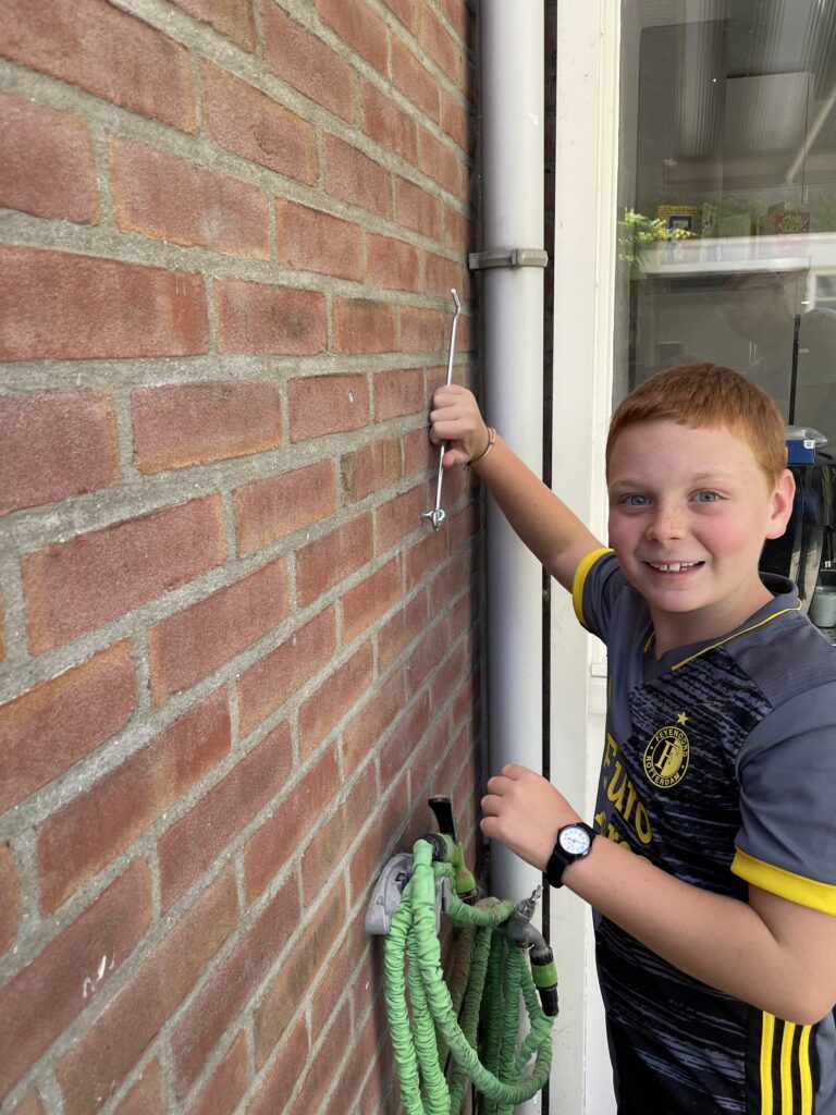 Terwijl mijn tuttebel en ik even langs opa en oma gaan en daarna een cadeautje gaan scoren voor de man, want die is jarig vandaag, helpt mijn bink de man mee met het plaatsen van een haak voor de achterdeur.