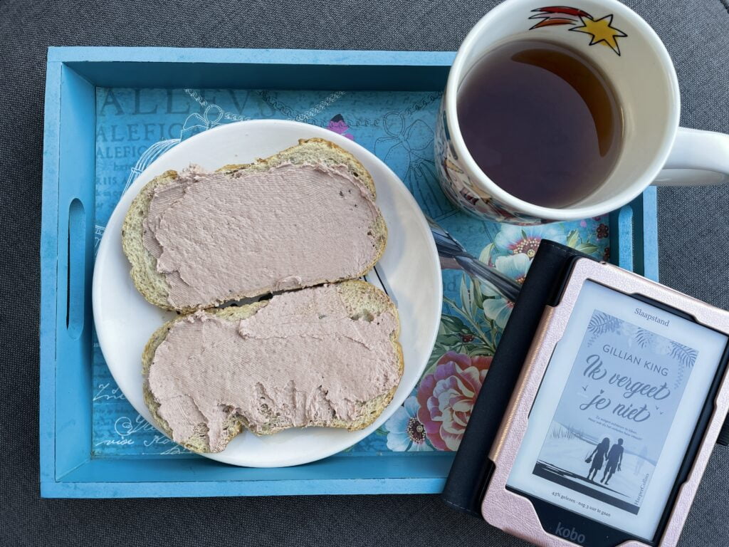 Dan begint het gewone leven weer en is voor ons de vakantie echt voorbij. Ik breng de kinderen naar de bso toe, wat best spannend is. De vakantiebso zit namelijk op een andere locatie dan normaal. Ik heb nog even tijd voordat ik mag gaan werken en ga lekker met mijn ontbijtje en een boek buiten zitten.