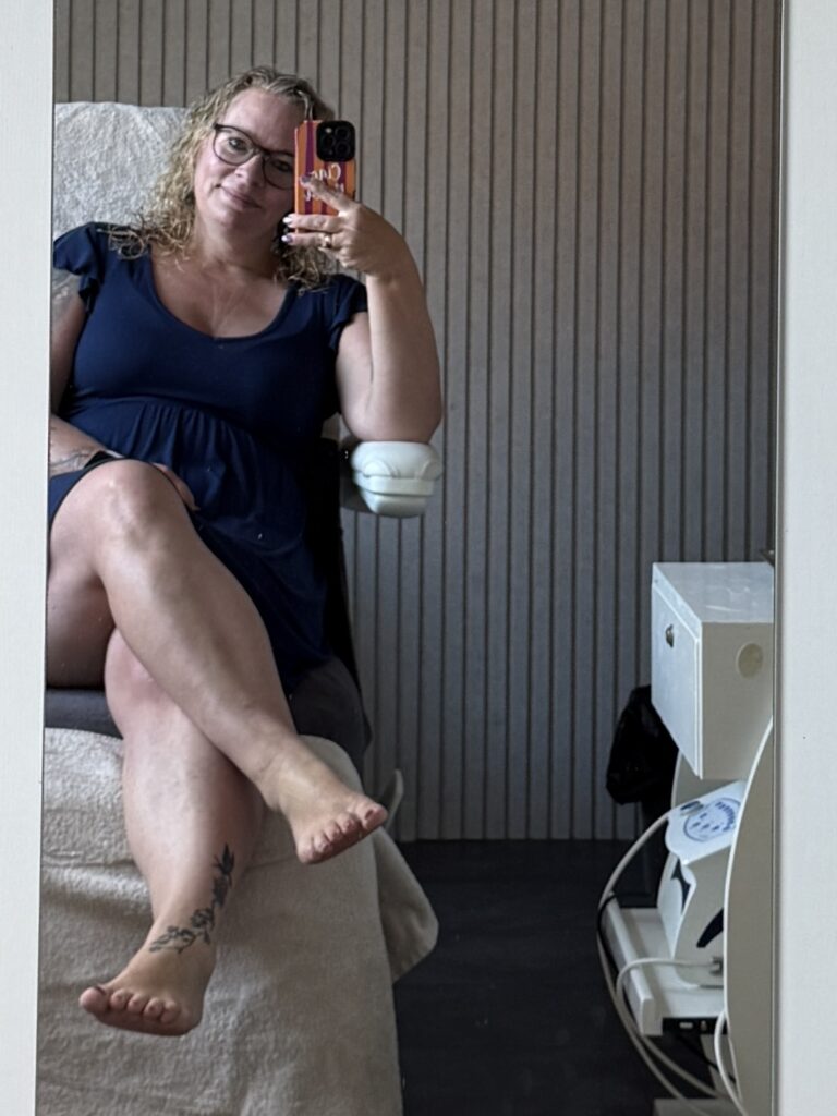 Tussendoor moet ik wel eerst nog naar de fysio- en ergotherapeut toe voor mijn eigen behandelingen. Ik krijg een spalkje voor mijn pink, omdat deze door hypermobiliteit krom staat. Iets met hypermobiel en steeds uit de kom schieten.