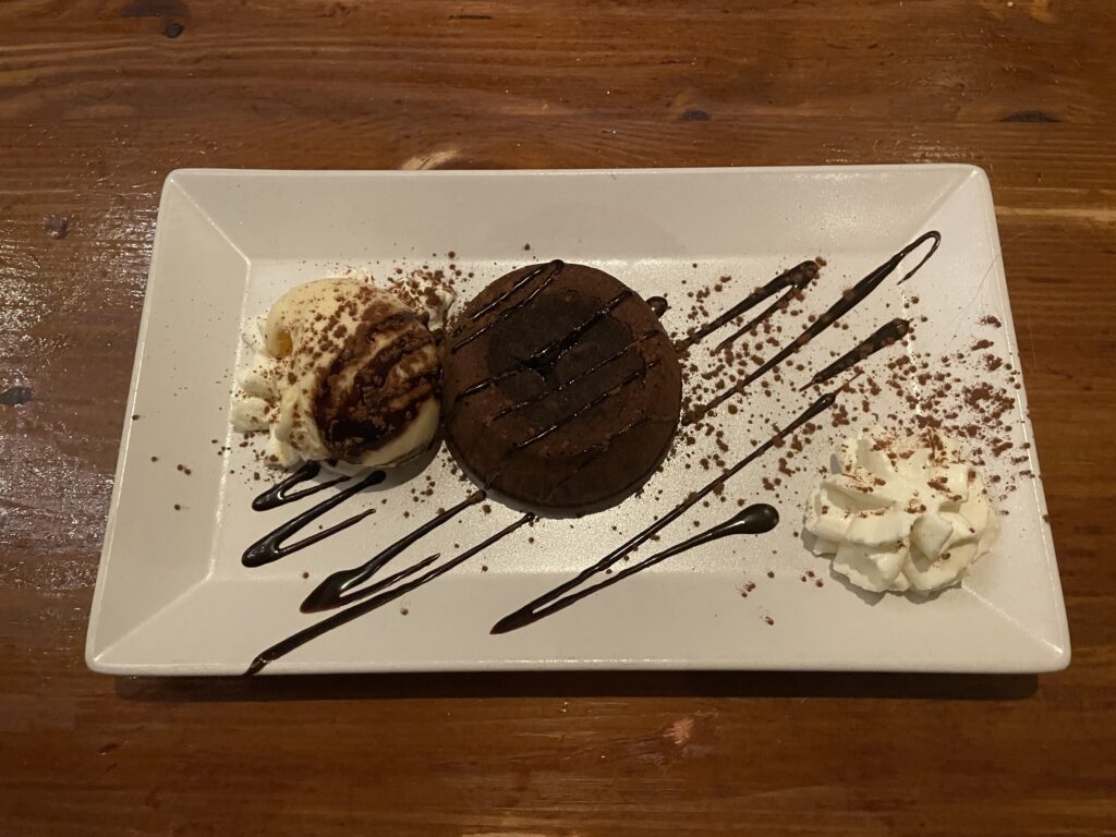 Het toetje is ook echt te lekker, maar na de helft van het lavacakeje zit ik echt vol en eten mijn moeder en mijn puber de rest op.