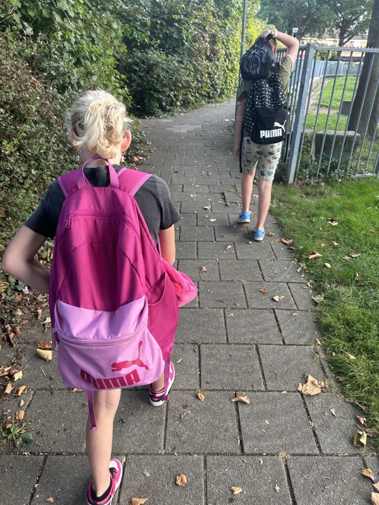 Als ik de kinderen naar school breng, zie ik ineens dat ze hand in hand lopen samen. Het is zo vertederend dat ik niet anders kan dan het vastleggen.