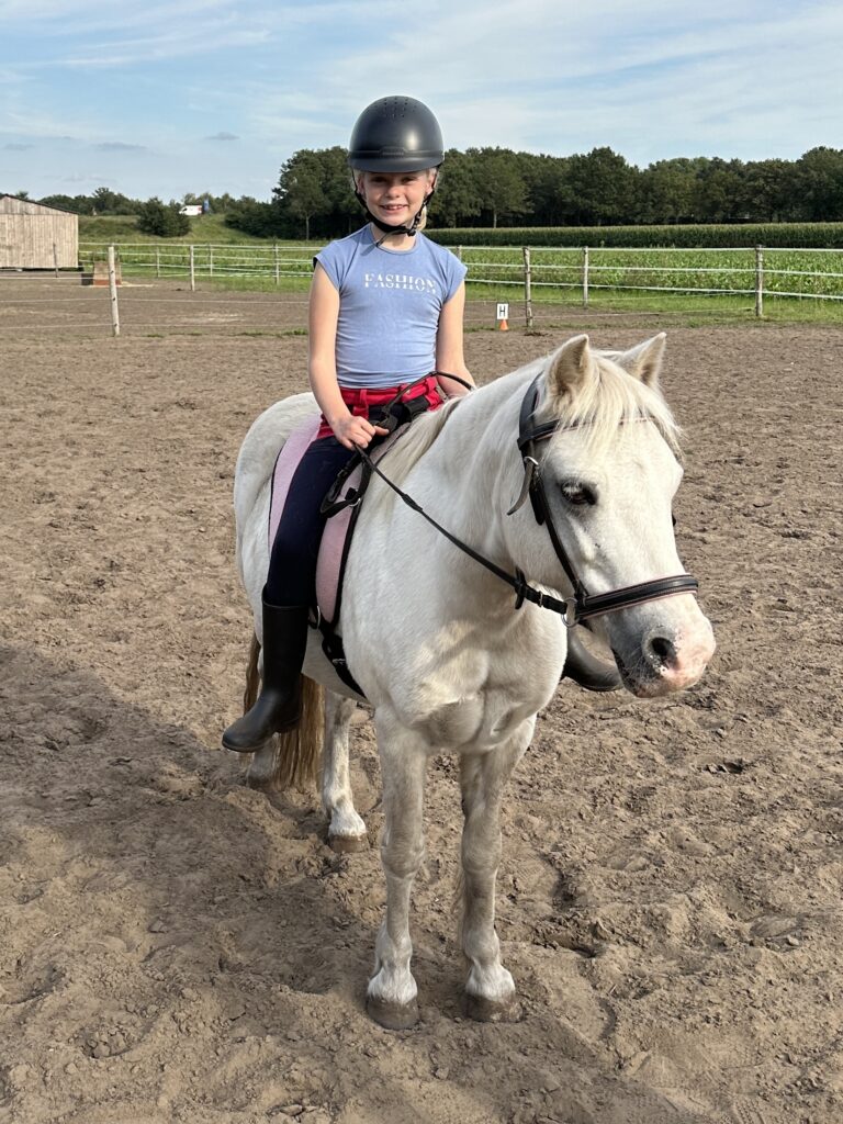 Vanmiddag is het dan eindelijk zover, mijn pre puber mag eindelijk paardrijden en ze geniet er enorm van. Van het poetsen tot rijden, van begin tot eind heeft ze een lach op haar gezicht. Zo leuk om te zien.