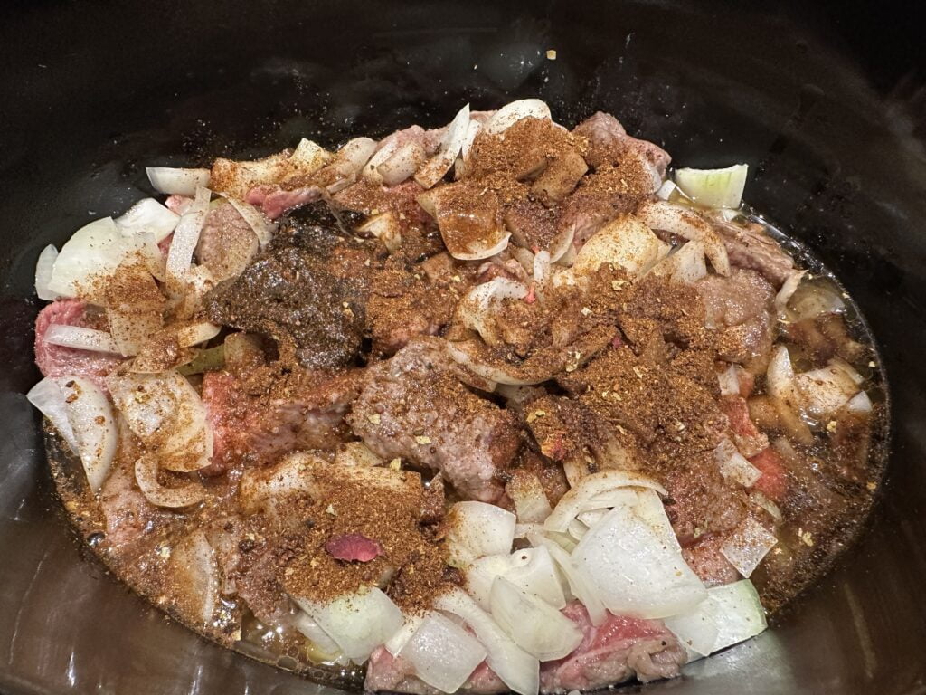 Als ik via een vriendin er aan herinnerd word dat ik stoofvlees moet maken, sta ik alsnog ’s avonds laat met mijn vermoeide hoofd de slowcooker te vullen. Zo jammer dit, maar ja weggooien is toch echt zonde.