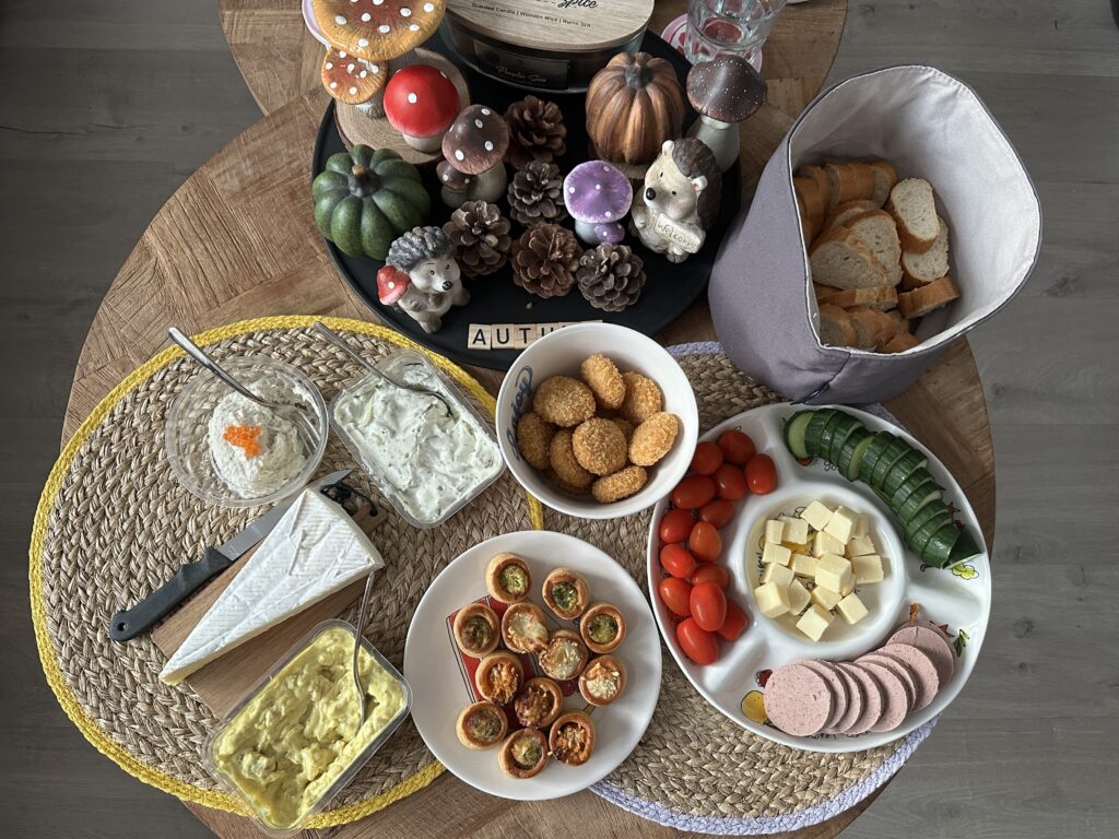 Ik had met mezelf afgesproken dat ik vanmorgen niet zoveel zou doen. Maar dat is niet gelukt. Ik ben naar het dorp gewandeld, heb daar een rondje Action en Kruidvat gedaan. De was die ik in de machine heb gedaan voor ik wegging, heb ik opgehangen. Mijn bed afgehaald en meteen weer opgemaakt. Beddengoed in de was gedaan. Planten water gegeven, de planner voor oktober ingevuld en de tafeldecoratieklem, die ik bij Action kocht, uitgetest en ik heb een heerlijke pompoensoep gemaakt voor tussen de middag.