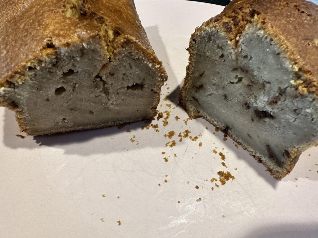 De kinderen willen allebei graag het bananenbrood proeven en vinden het heerlijk. Er worden meteen plakken gesneden voor in de broodtrommels.