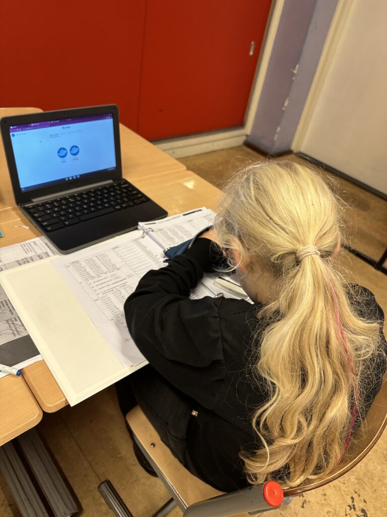 Vandaag ga ik een dag en nacht weg, dus ik breng de kinderen naar school toe. Mijn tuttebel breng ik zelfs tot in haar lokaal, waarna ze aan haar opdracht automatiseren begint.