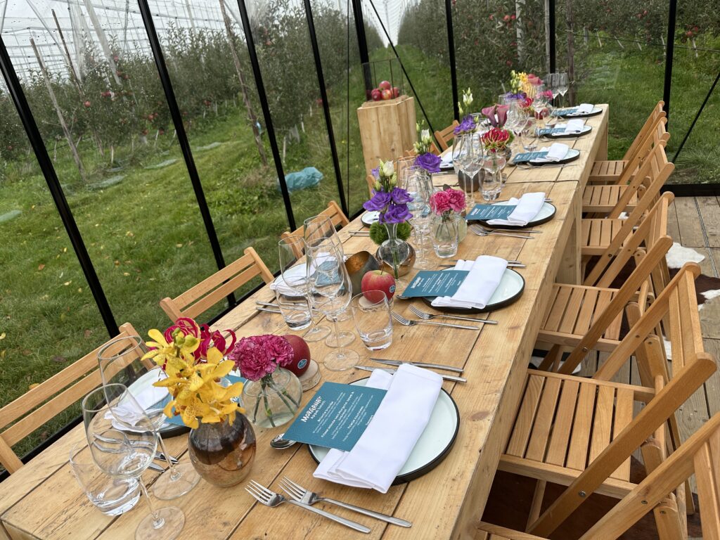 Aansluitend volgt een appel lunch met allerlei heerlijke gerechten. Dit alles vindt plaats in een mooie kas die helemaal is omgebouwd tot eetgelegenheid.