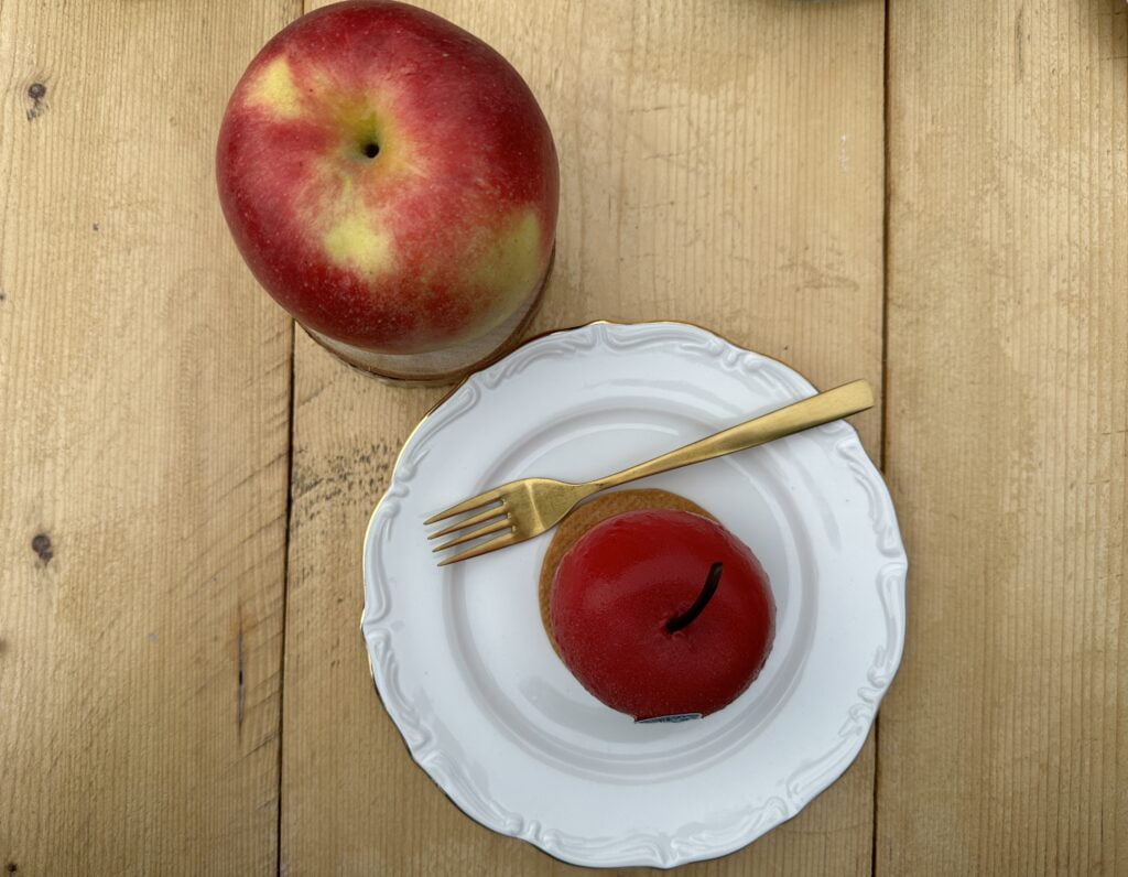 Iets voor twaalven kom ik aan bij Fruitbedrijf Wouters, waar we worden verwelkomd met een heerlijk gebakje in de vorm van een Morgana appel.