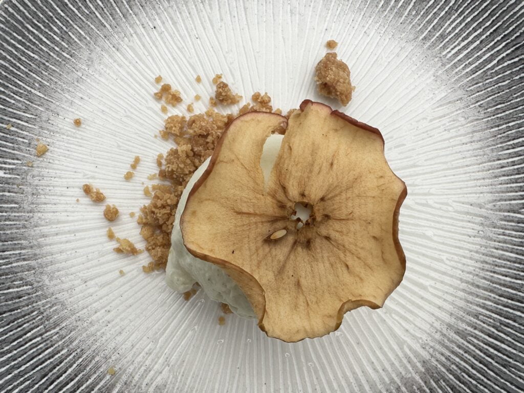 Het dessert was een Morgana appel sorbet met honing en lavendel. Voor wie mij goed kent, ijs en honing zijn niet zo mijn ding, maar dit was echt heerlijk en de lavendel in het ijs was echt verrassend lekker.