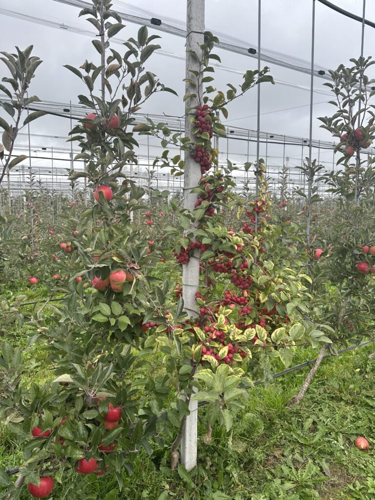 Naast de Morgana appels groeien sierappeltjes. Deze sierappels moeten zorgen voor de bestuiving van de Morgana appels. Hiervoor heeft Roger ongeveer twaalf bijenvolken in zijn imkerij. De overige bestuivingen worden gedaan door wilde bijen en hommels om het natuurlijk evenwicht ook in stand te houden.