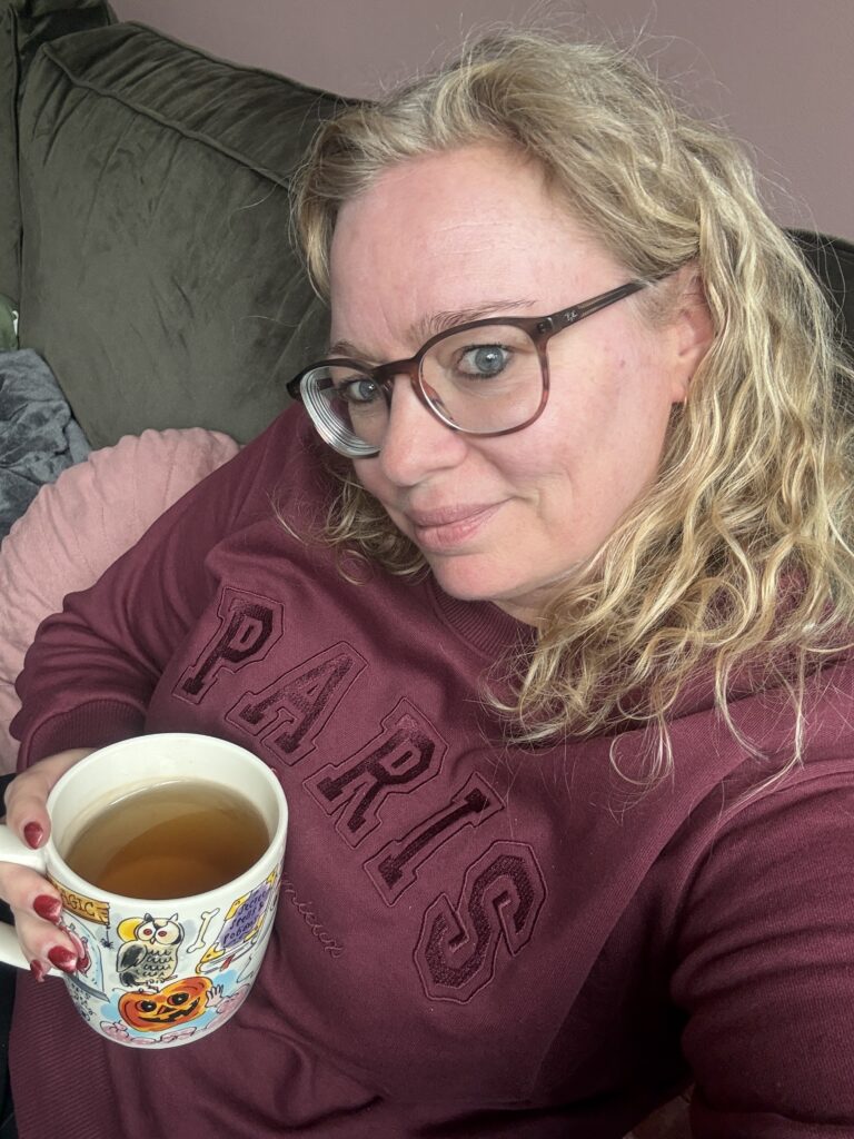 Ik geniet na mijn werk even van de rust met een bakkie, terwijl de puber op zijn eigen kamer zit.