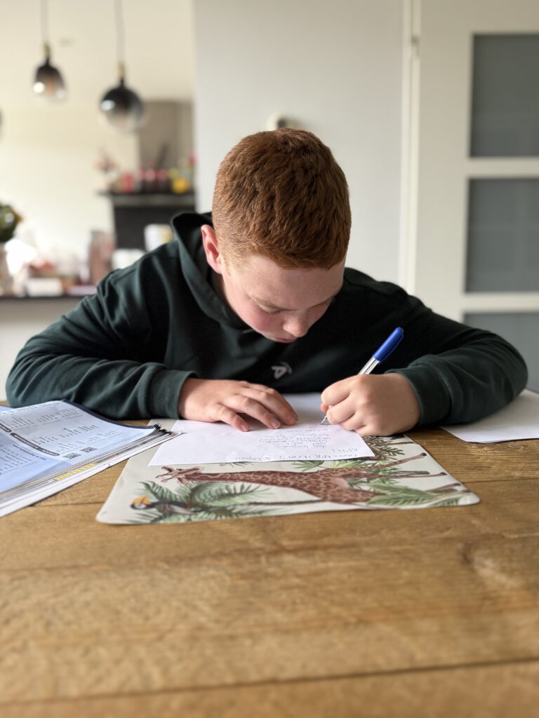 Mijn puber heeft inmiddels drie toetsen gehad en zit samen met mij aan tafel. Hij leert voor zijn toets Frans.