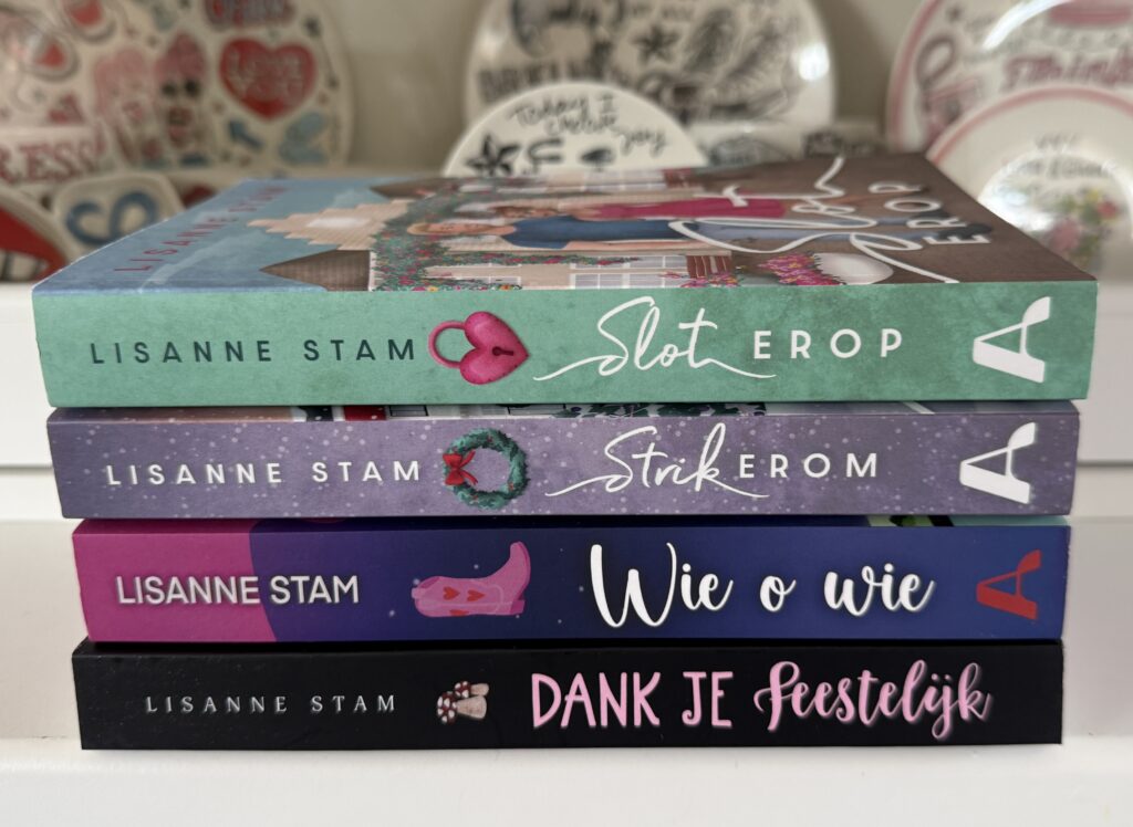 Er komt een pakketje binnen van de leuke Lisanne Stam, die me in één van haar boeken maffie noemt, maar ondertussen in ieder boek een ander verhaaltje heeft geschreven, dus wie is hier nu een maffie. En supertrots op haar, want Dank je feestelijk heeft ze gewoon helemaal zelf uitgegeven. Overigens is deze druk van Wie o Wie ook met sprayed edges.