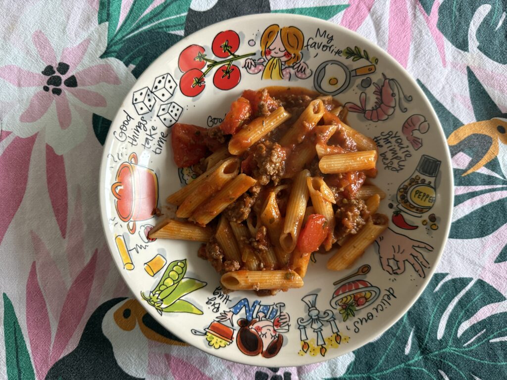 Voor het avondeten maak ik een simpele pasta bolognese klaar.
