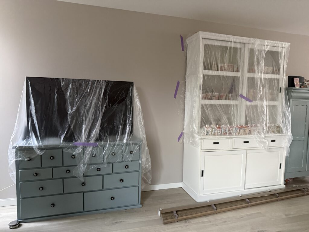 Vandaag werk ik thuis, want ze zijn inmiddels al begonnen aan de kozijnen. Ik ben zo benieuwd hoe het er straks uit ziet als het af is.