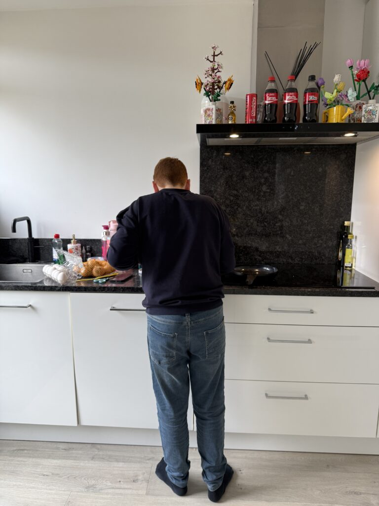 Mijn puber maakt voor tussen de middag de lunch voor mij en zichzelf. Als hij zo staat, zie ik ineens Erik voor me. Zijn houding is echt exact hetzelfde. Als ik een foto aan hem laat zien, vindt hij dat wel heel erg bijzonder. Het is mooi om te zien dat hij zo op zijn vader lijkt, al maakt het ook echt wel heel veel bij me los.