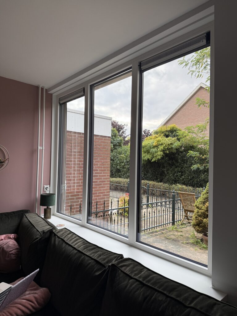 Ik ga aan de slag in huis. De glazenwasser zeemt de ramen buiten en ik doe de binnenkant. Zo fijn dat het klaar is.