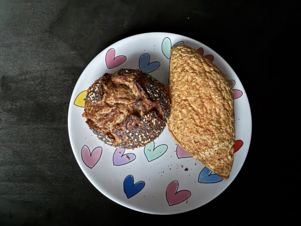 Hij heeft omelet met wrap gemaakt, maar we zijn het er allebei over eens dat alleen de omelet de volgende keer wel genoeg is. Het smaakt in ieder geval heerlijk.