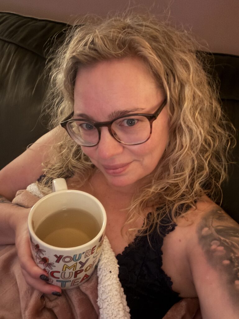 Als ik om zeven uur terug ben ga ik met een bakkie op de bank zitten en even niks doen. Mijn tiener slaapt nog lekker, ondanks dat ze eigenlijk wakker gemaakt had willen worden.