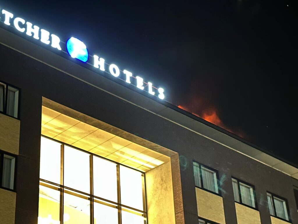 Na een harde klap schrik ik om kwart voor twee (wintertijd) wakker. Meteen na de klap begint het brandalarm te loeien. Mijn tuttebel is ook meteen wakker. Heel gemoedelijk kleden we ons aan, gaan nog naar het toilet, pakken wat spullen en ik vergeet gewoon mijn telefoon. We lopen naar de kamer van mijn mannen en gaan naar buiten toe. In eerste instantie denken we dat het vals alarm is, alweer, want vorig jaar hadden we dit ook, al was het toen ’s middags, wat wel een beter tijdstip is dan nu. Toch zien we al snel rookontwikkeling en niet veel later ook vlammen. Het restaurant waar wij eerder vanavond hebben gegeten, staat voor de tweede keer in een paar maanden tijd in lichterlaaie.