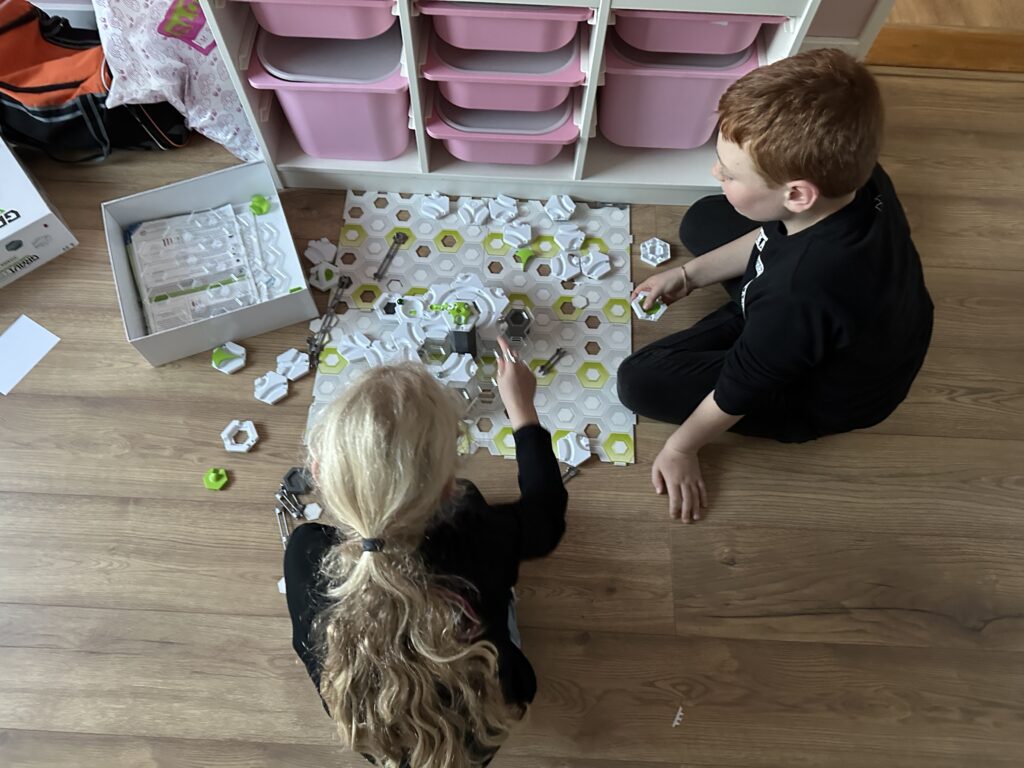 De kinderen lopen meteen door naar boven, waar ze weer lekker met de Gravitrax knikkerbaan aan de slag gaan. Zo grappig dat ze dat ineens weer helemaal hebben ontdekt. Is overigens ook een superleuk decembercadeau.