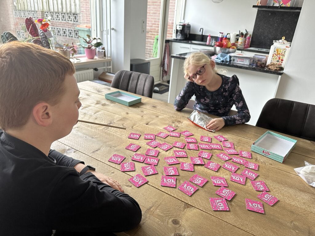 Aansluitend spelen we nog even een spelletje memory, want dat hebben we deze vakantie nog helemaal niet gedaan. Helaas heb ik mijn titel queen of memory af moeten staan aan mijn tuttebel.