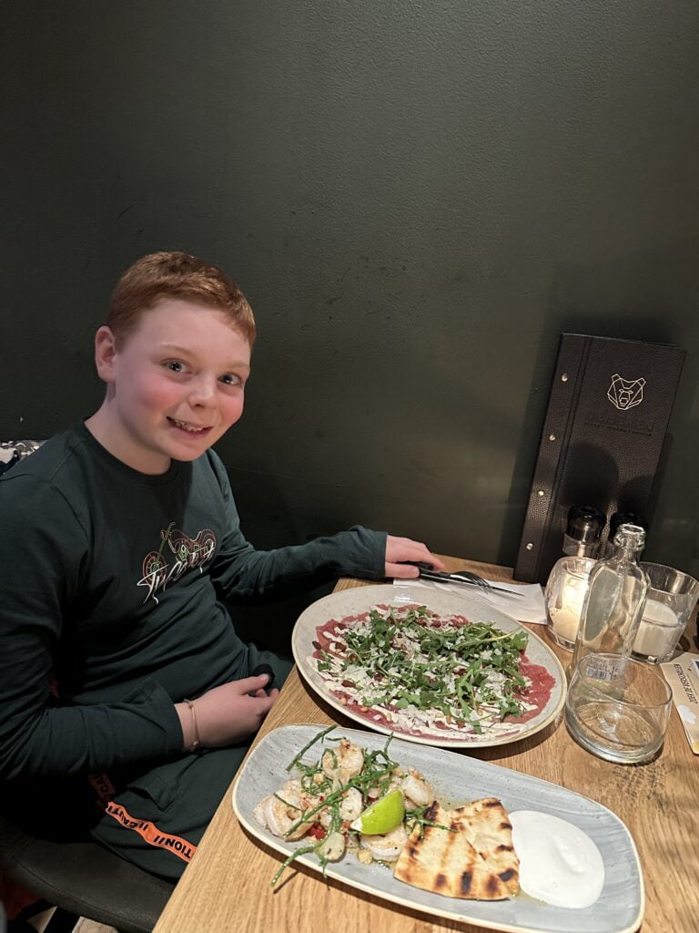 ’s Avonds gaan we gezellig met zijn viertjes uit eten. Mijn bink en ik genieten van een heerlijk voorgerecht. Hij koos carpaccio en ik voor scampi’s in olie. De man eet tot onze verbazing wat hapjes mee van onze gerechtjes, wat wel echt superfijn is.