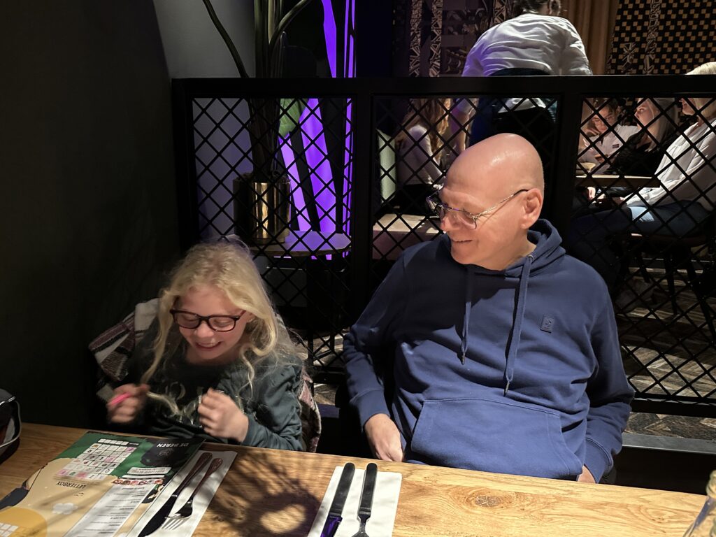 De man en mijn tuttebel hebben ook de grootste lol aan tafel. Man wat heb ik dit ontzettend gemist de laatste weken. Eindelijk lijkt er weer kwaliteit van leven te zijn voor de man. Zo fijn, ook voor hem zelf. Lang leve de bloedtransfusie die lijkt aan te slaan.