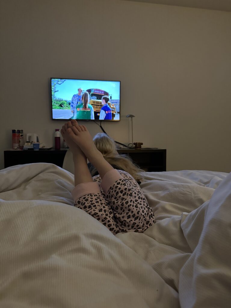 Zaterdagochtend doen we lekker rustig aan, de kinderen kijken lekker televisie in bed. Wat ze allebei wel heel fijn vinden.