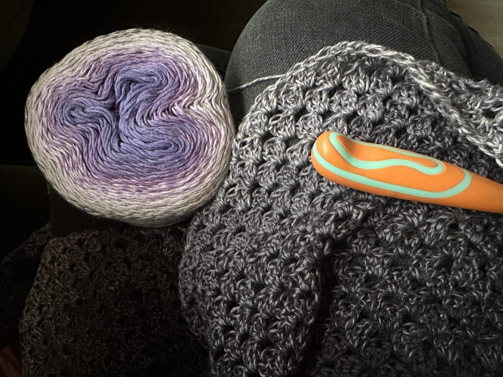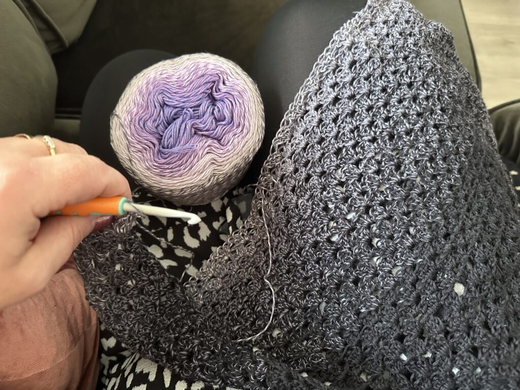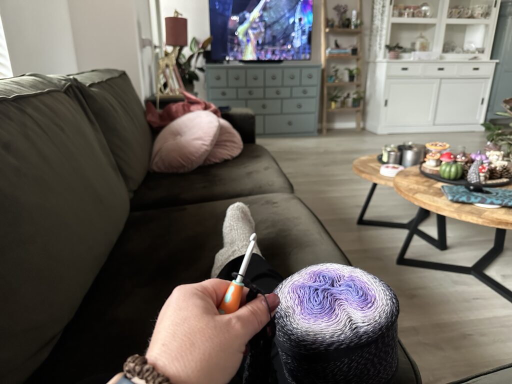 Helaas regent het in de pauze heel hard dus besluit ik om lekker even een halfuurtje te gaan haken, terwijl ik een aflevering van De Verhulstjes kijk.