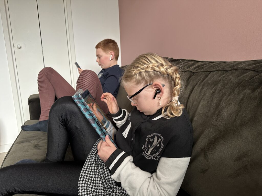 De kinderen hebben beide hun therapie gehad en dus is het tijd voor een uurtje afschakelen, tot opa en oma komen.