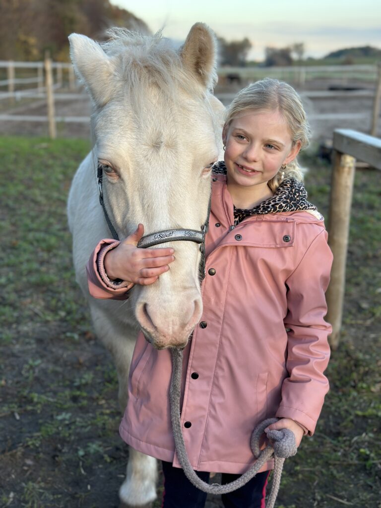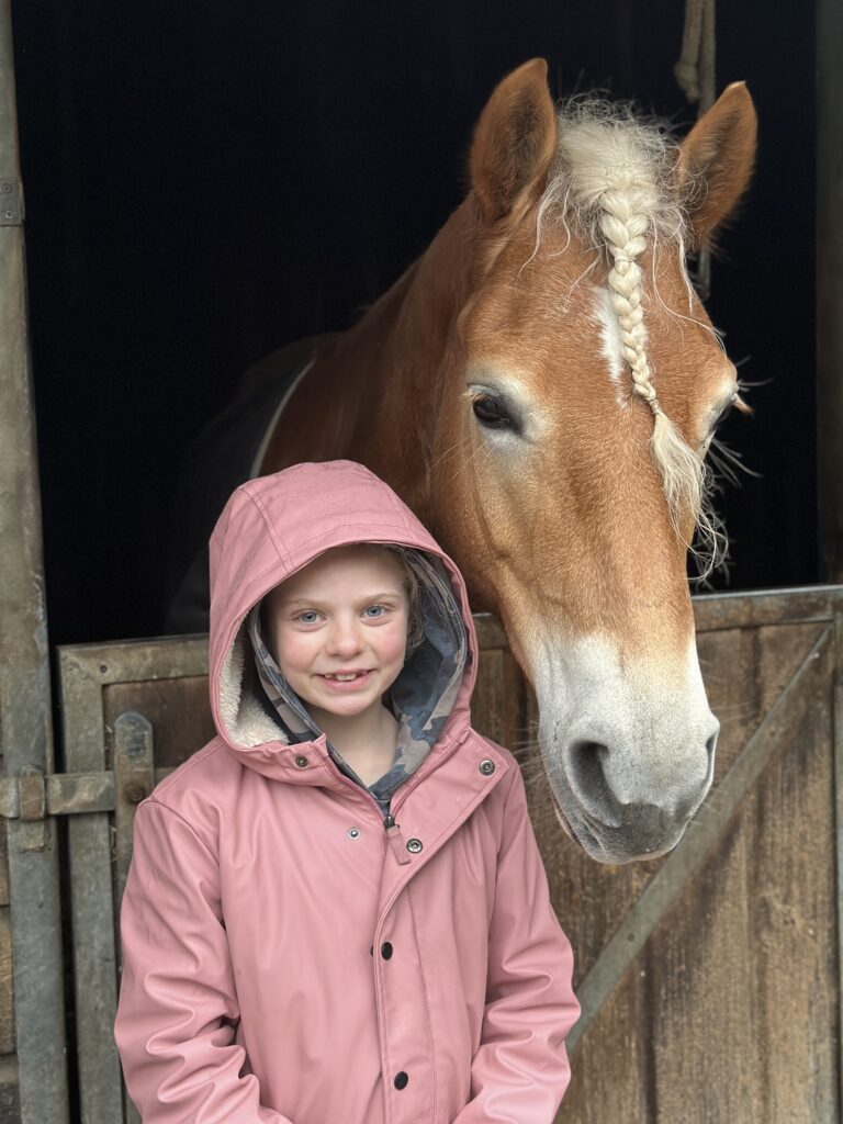 Als ik een beetje ben opgewarmd, gaan we nog even naar een manege waar ik vroeger als klein meisje ook heb gereden. We willen hier kijken, omdat mijn tuttebel bij de huidige manege meiden van haar leeftijd mist waarmee ze op kan trekken. We mogen hier lekker rondlopen en bij de paarden en pony’s kijken. Als er een Gulietta staat wil ze daar uiteraard mee op de foto natuurlijk.