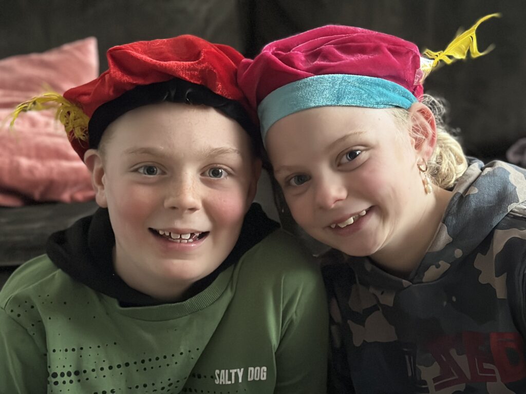 Hij komt, hij komt, die lieve goede Sint… Na de voetbal kijken we met zijn drietjes naar de intocht op televisie.