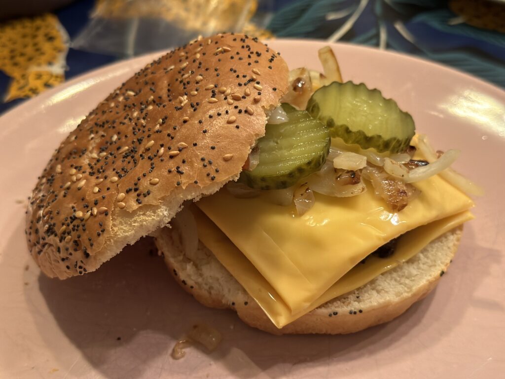 Voor het avondeten maak ik een hamburger en kunnen de kinderen zelf bepalen wat ze erop en bij eten.