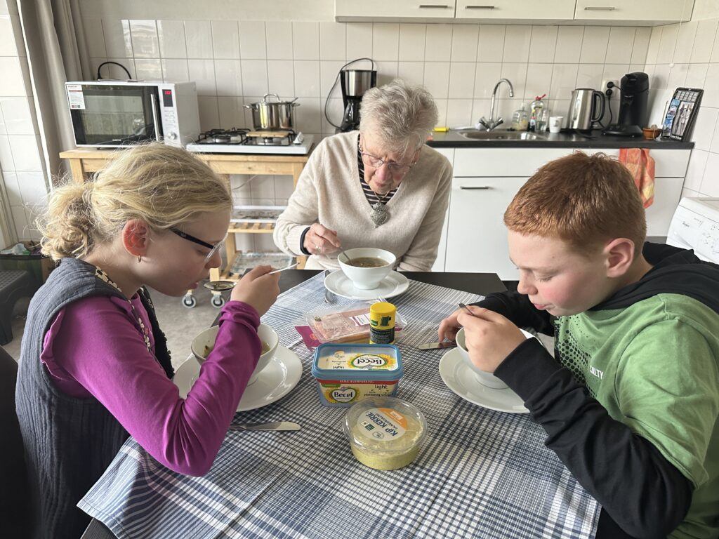 Na de race gaan we ons klaar maken en rijden we naar oma toe. Het is er erg gezellig en als oma ook nog groentesoep heeft gekookt kan de dag van de kinderen al helemaal niet meer stuk.