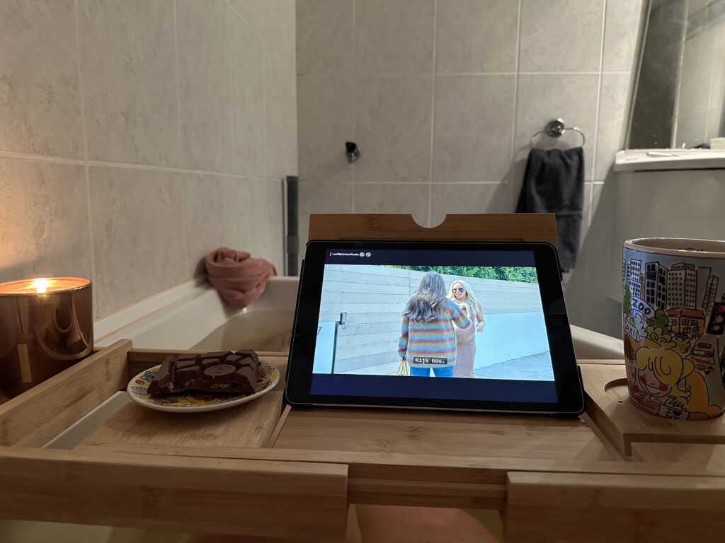 Doordat ik vandaag maar weinig tijd voor mezelf heb, besluit ik het er nog even van te nemen. Ik laat het bad lekker vollopen en ga met een bakkie, chocola en een serietje lekker in bad zitten.