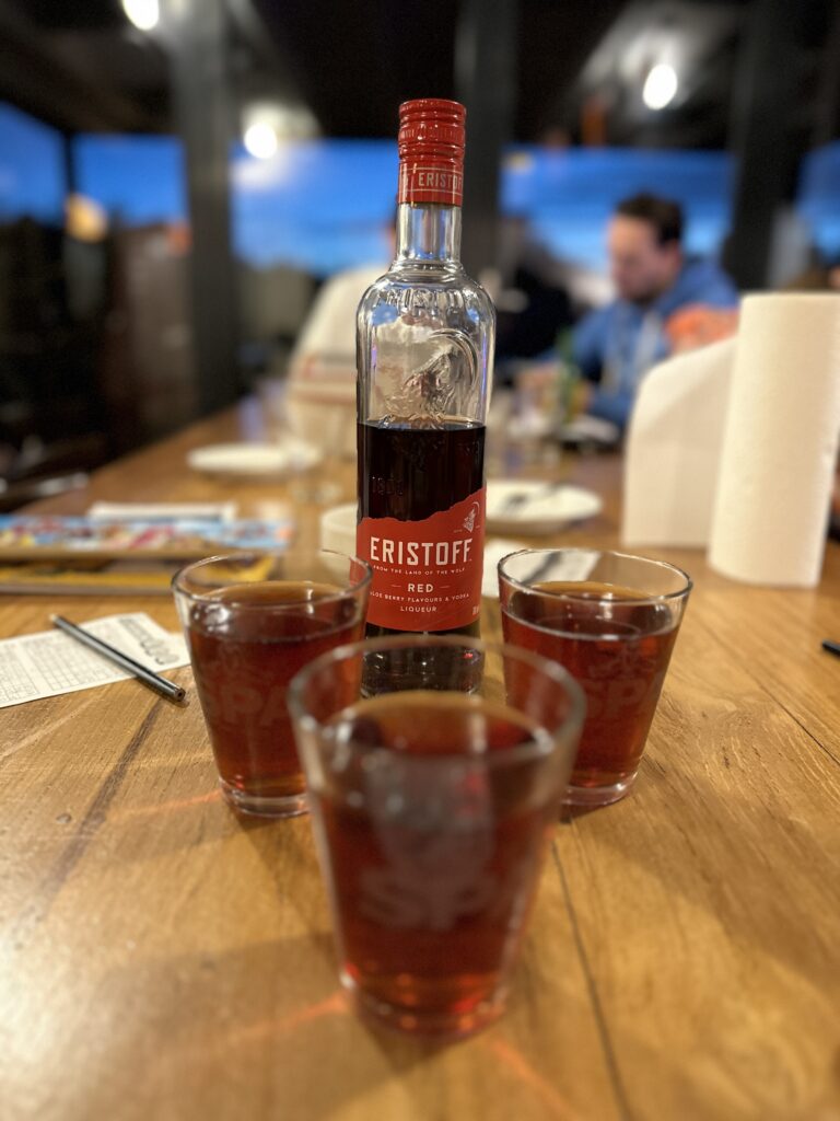 ’s Middags drink ik samen met mijn vriendinnen een glaasje rode wodka red bull. Iets wat ik echt al heel lang niet heb gedronken, maar eigenlijk prima smaakt.