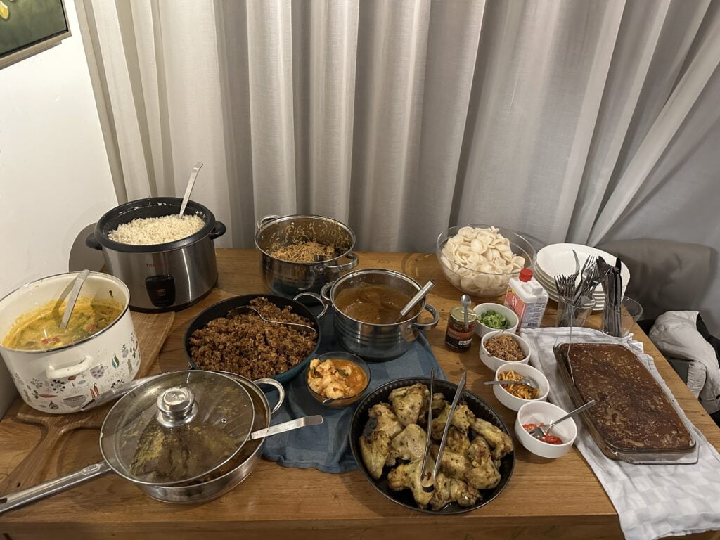 Eén van mijn vriendinnen heeft een complete Indonesische rijsttafel staan koken en dat ziet er echt geweldig uit en smaakt ook wel echt heel erg lekker.
