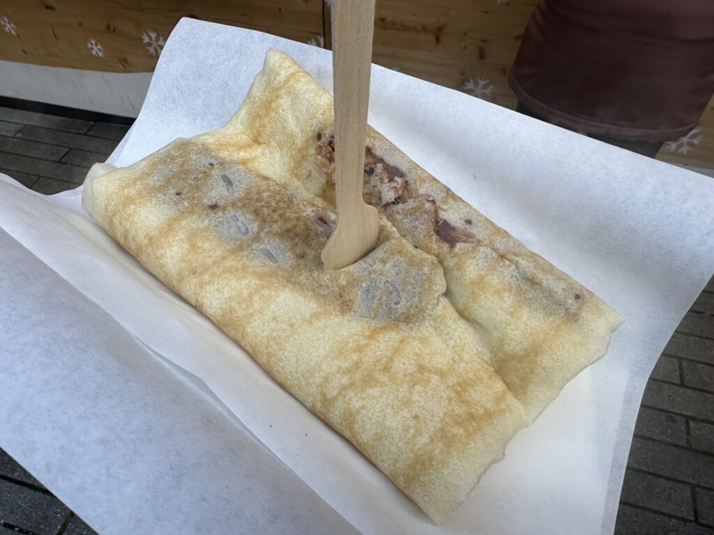 Omdat we ook nog zoete trek hebben besluiten we om ook nog een crêpe te gaan eten. Ik neem een crêpe met kinder bueno en die is erg lekker, maar ook enorm groot.