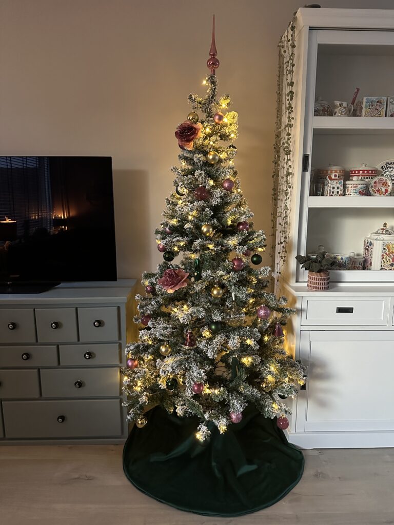 Zoals ik al zei heb ik de kerstboom neergezet. Ik wilde het eigenlijk niet, maar de kinderen willen het wel en stiekem vind ik het ook wel weer erg gezellig om hem te hebben staan.