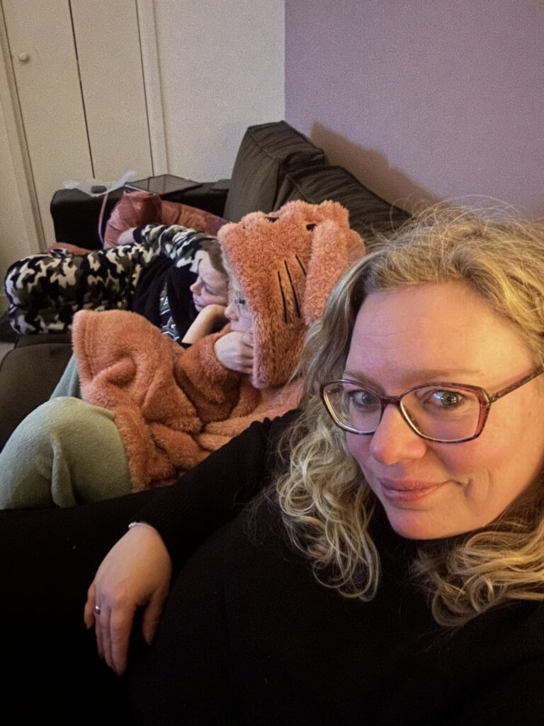 En zo zitten we heerlijk met zijn drietjes op de bank.
