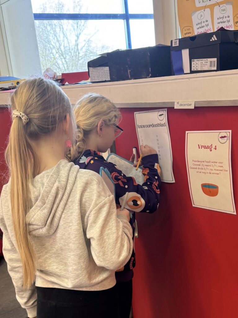 Mijn puber heeft vandaag de redactiesommen die overal door de klas hangen en mag die samen oplossen met een klasgenoot.