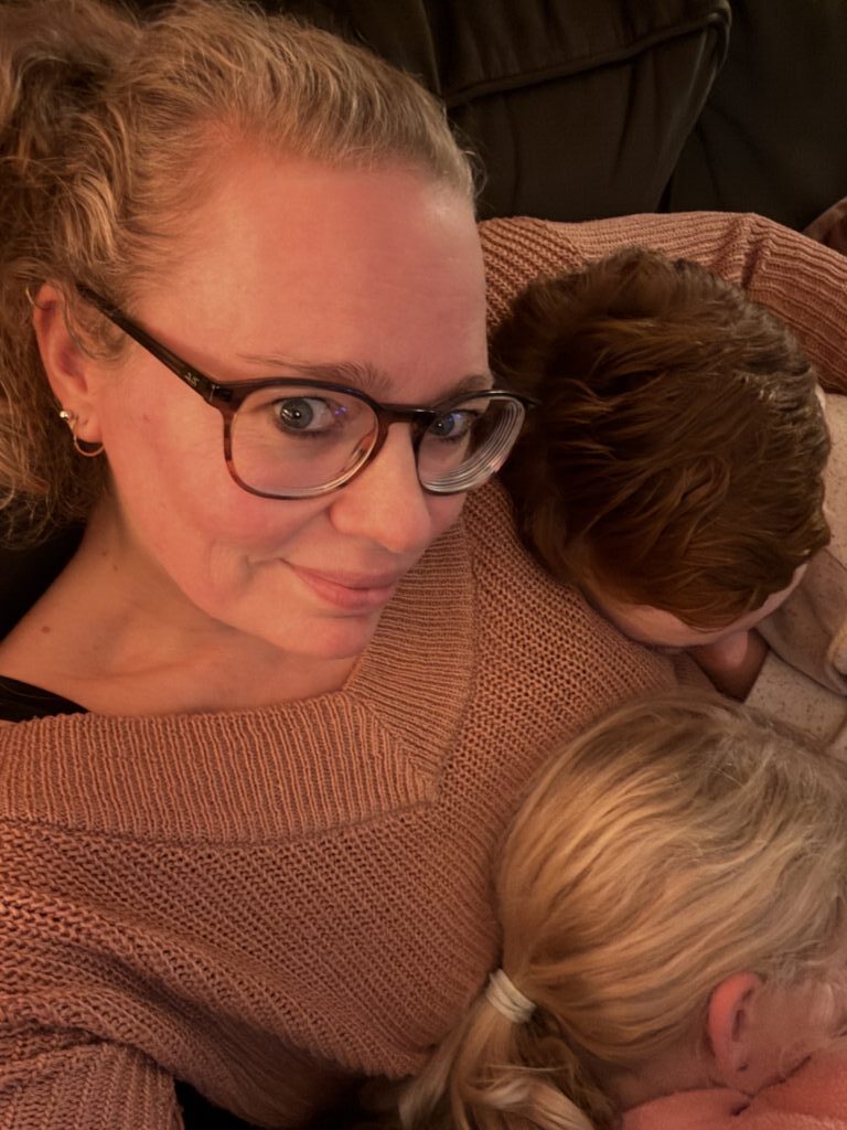 En dan zijn we weer allemaal herenigd. We kijken nog even televisie en kroelen samen. Daarna is het tijd voor hun bed, want morgen mag er weer vroeg gevoetbald worden.