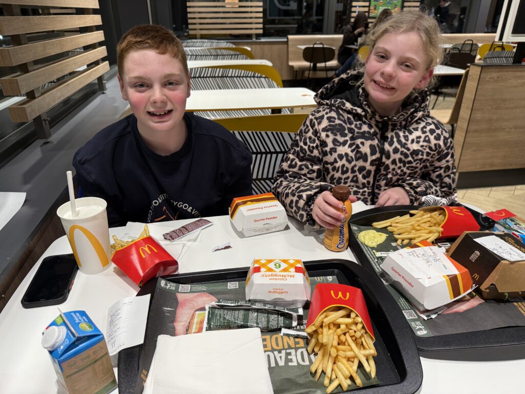Inmiddels is het echt al laat en dus gaan we met zijn drieën gezellig naar Mc Donalds toe.