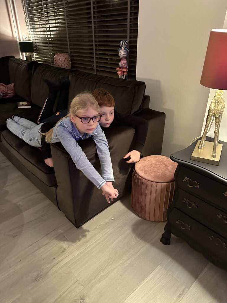De ochtendspits loopt voor de verandering eens op rolletjes, trots op mijn olijke duo dat ze zo goed meewerken, aangezien ze om half acht naar de bso moeten vandaag. Ze hebben zelfs nog tijd over om even televisie te kunnen kijken.