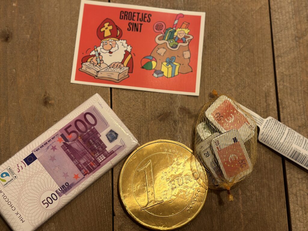 Als we thuiskomen ligt er een pakketje van Sinterklaas in de brievenbus. Toch leuk om te weten dat Sinterklaas bij ons aan de overkant woont.