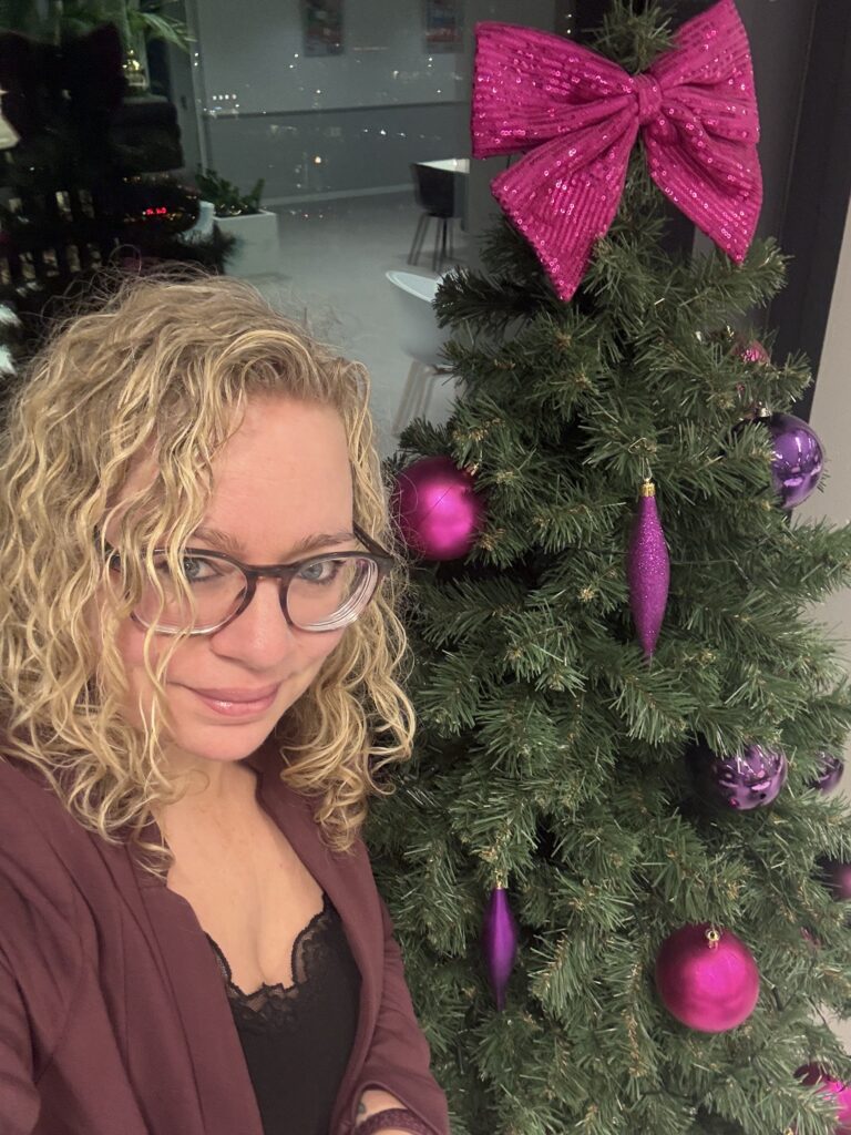 Het is een traditie geworden om een selfie te maken met de kerstboom van mijn werk. Normaal doe ik dat op mijn laatste kantoordag van het jaar, maar ik weet niet zeker of ze er dan nog staan.