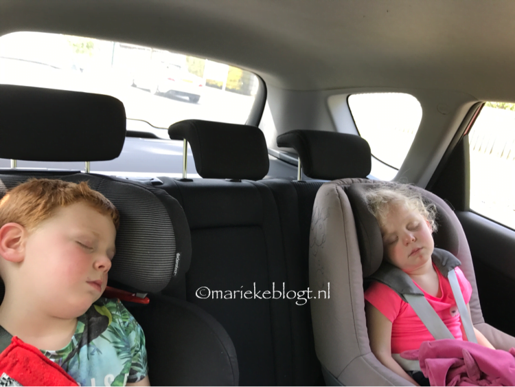 Na het zwemmen brengen we Eriks oudste zoon nog even naar huis. En gaan wij door naar vrienden in Breda. De kinderen vallen als een blok in slaap in de auto.